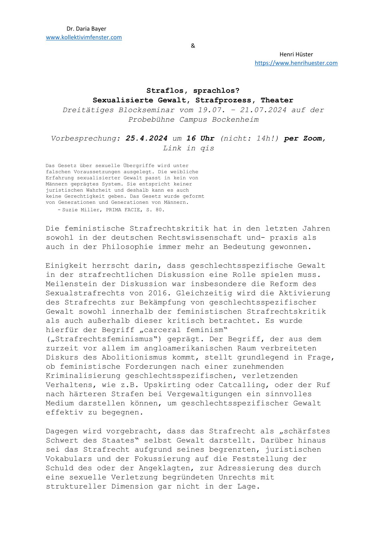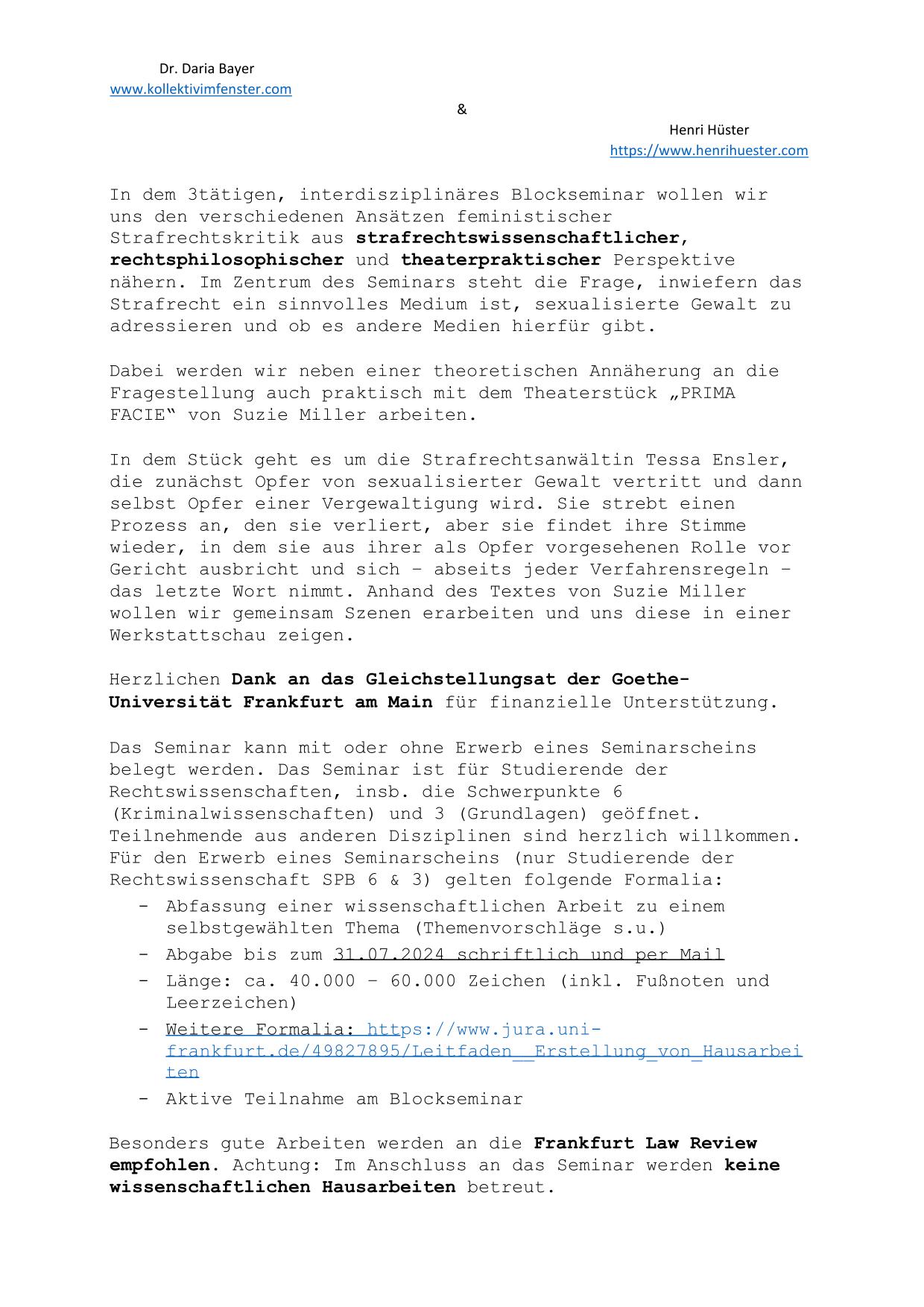 Dreitätiges Blockseminar vom 19.07. - 21.07.2024 auf der Probebühne Campus Bockenheim. Nähere Informationen sind hier zu finden.
