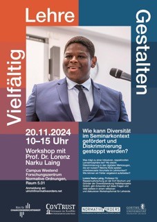 Wie kann Diversität in der Hochschullehre aktiv gefördert und Diskriminierung gezielt unterbunden werden? Was genau trägt zu einer inklusiven, respektvollen Lernatmosphäre bei? Wo steckt Diskriminierung in all den digitalen Werkzeugen, die wir nutzen? Welche Rolle spielen unterbewusste Vorurteile im Lehrkontext? Und sollten einmal Fehler passieren: Wie können sie adressiert und aufgearbeitet werden? Prof. Dr. Lorenz Narku Laing gibt Antworten auf diese Fragen und viele weitere in einem reflexiven, unterhaltsamen und diskursiven Workshop „Lehre vielfältig gestalten“, der sich vor allem an Lehrende richtet.